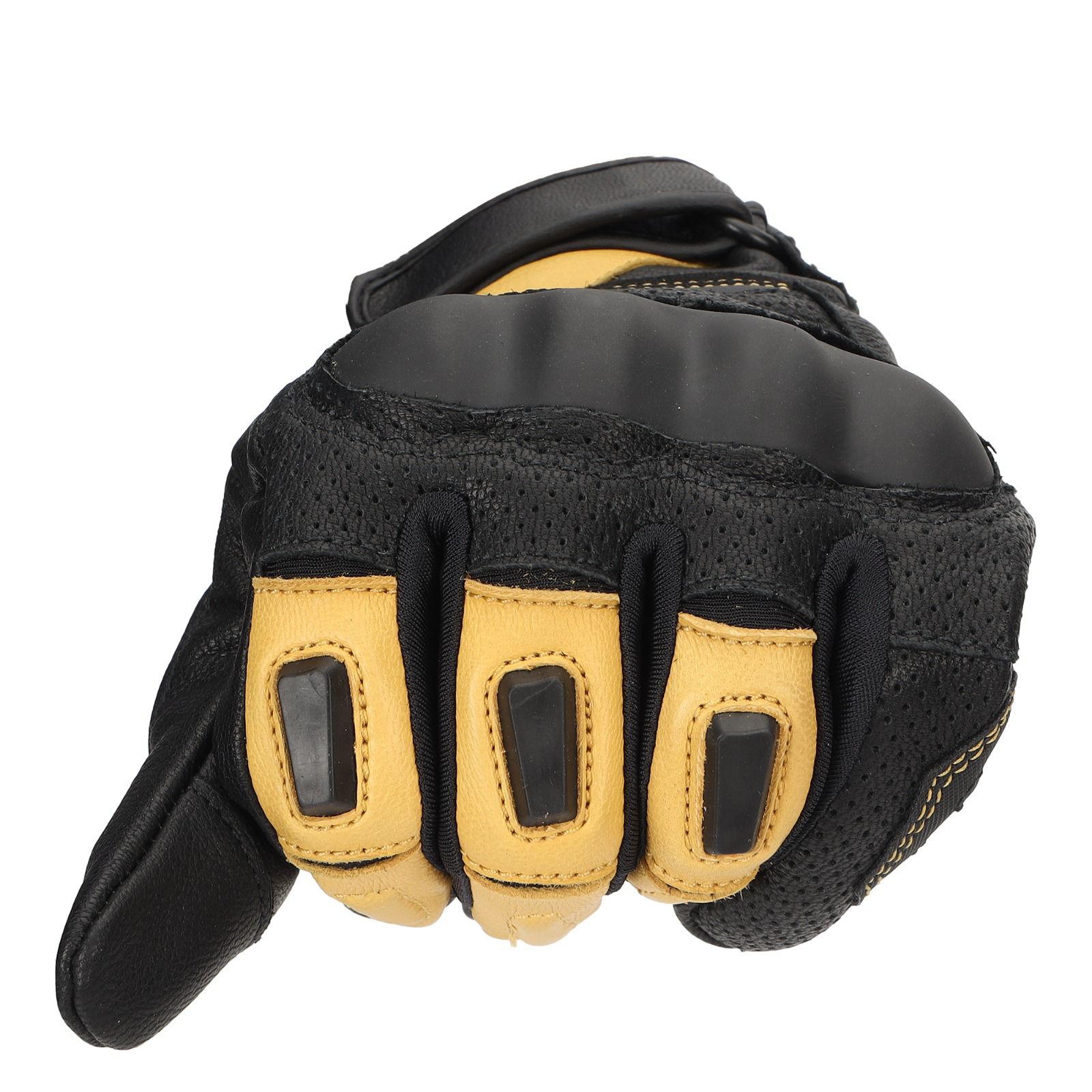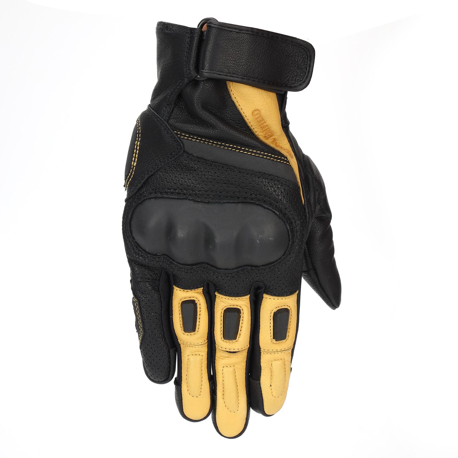 Blending premium craftsmanship with rider-focused engineering, the Arizona Leather Gloves are designed to deliver uncompromised protection, comfort, and performance on every ride. Crafted from 100% genuine leather combined with 4-way stretch polyester panels between the fingers, they offer flexibility without losing durability. CE-certified to Level 1 – Knuckle Protector standards, these gloves feature TPR protectors on knuckles and fingers, along with double-layered leather sliders at the palm for enhanced safety. Perforated leather panels ensure breathability, while the neoprene cuff provides a secure and comfortable fit. With touchscreen-compatible fingertips and reinforced grip patches, these gloves are as functional as they are stylish—perfect for riders who demand both heritage aesthetics and modern utility.