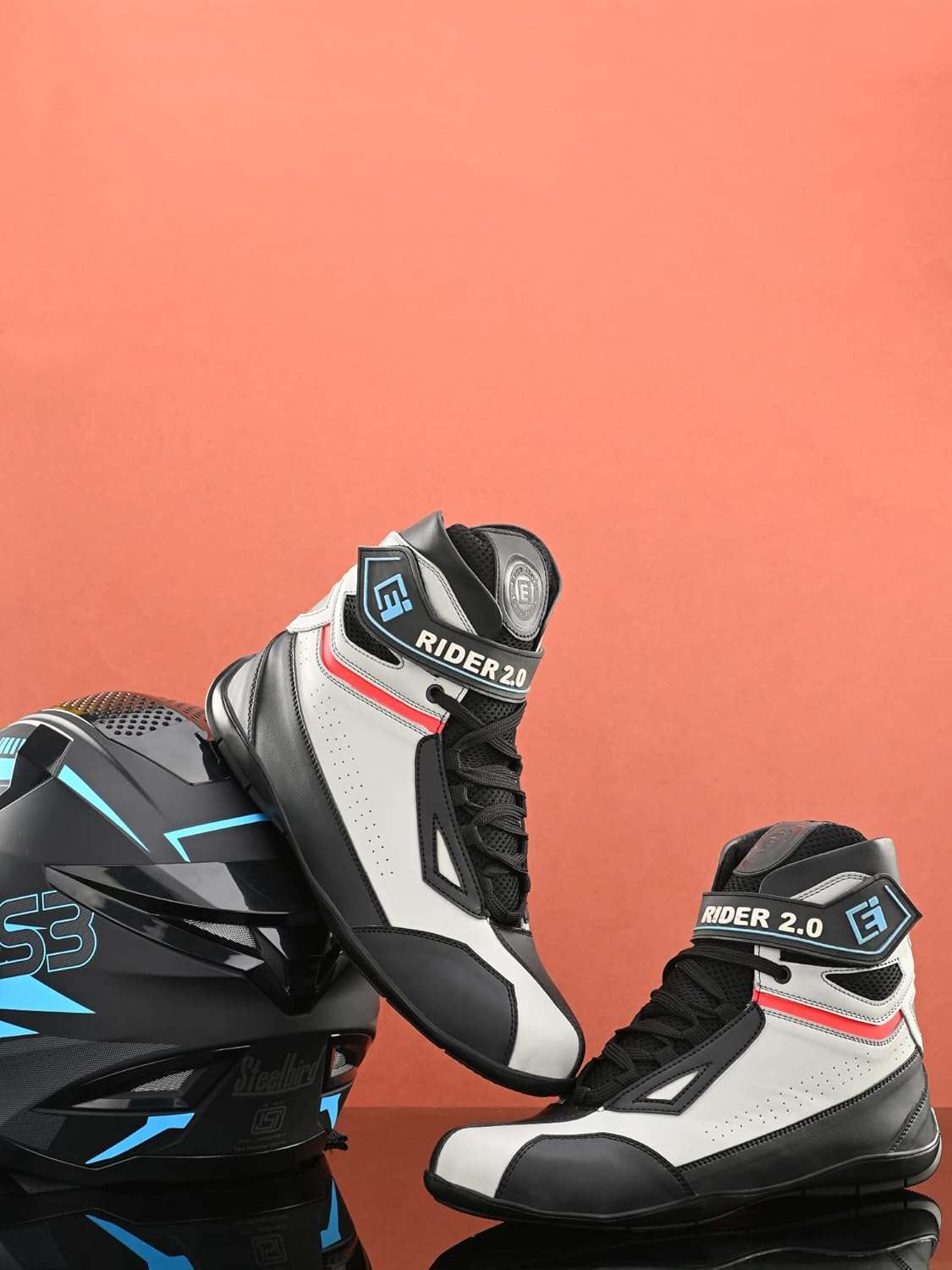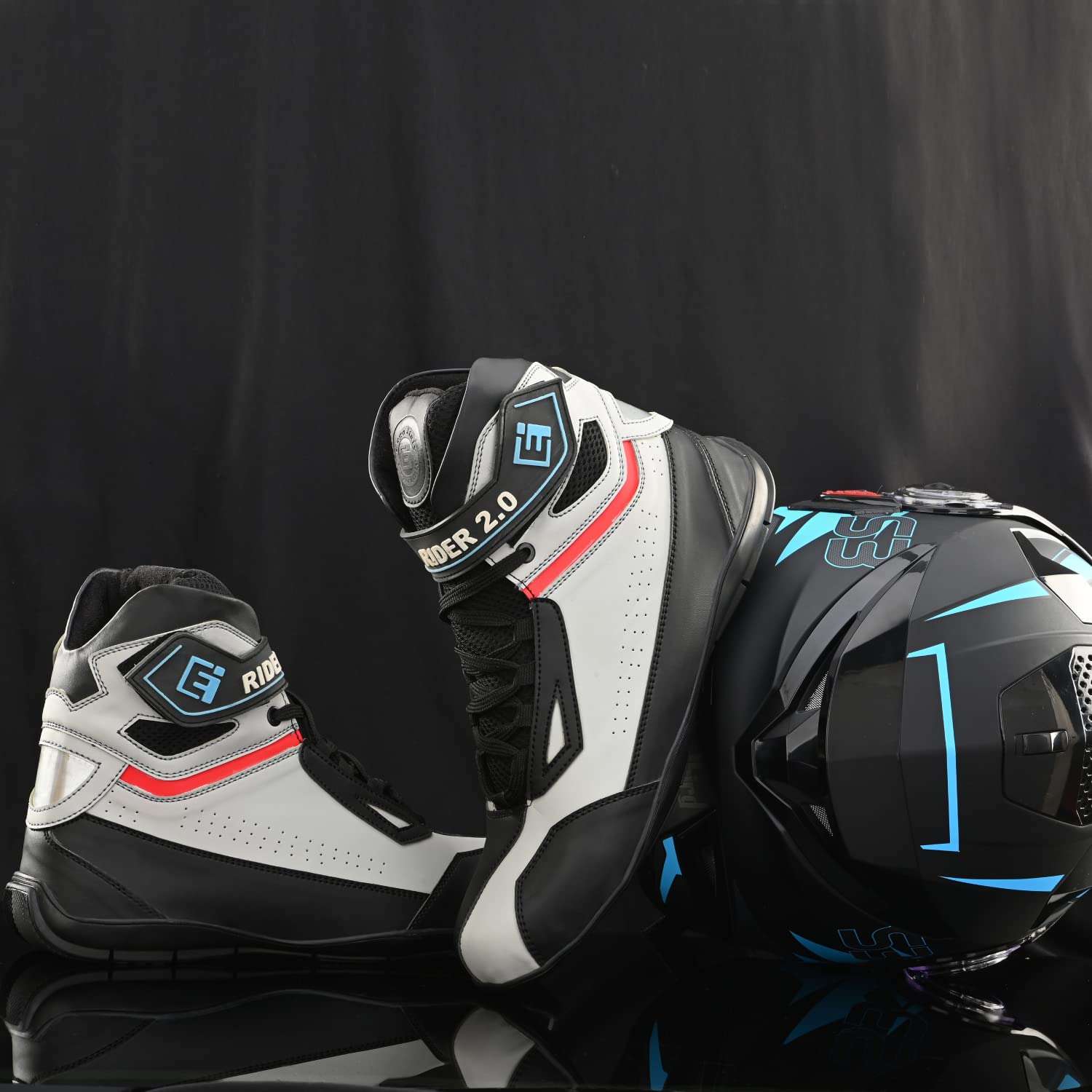 Eego Italy Rider-2, Water Resistant Biker boot/Motorcycle riding boot, light weight & anti slip sole , padded in socks, 3M Reflectors, walkable with shin and ankle protection
