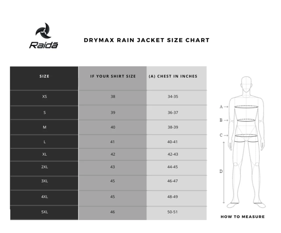 | Included Components | Rain jacket, Carry Pouch |